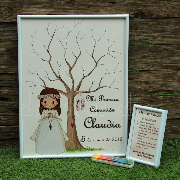 También preparé un árbol de huellas en el que, como detalle simpático, Raquel me propuso incluir unas zapatillas de ballet, ya que es la afición de Claudia: