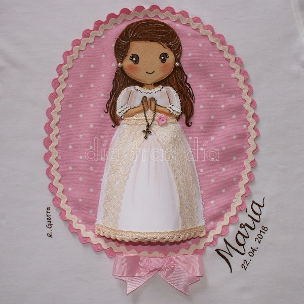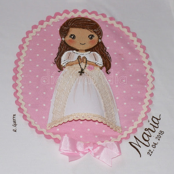 Maria Jesús quiso que le preparase un árbol de huellas y una camiseta personalizada. Para ello, como siempre, me envió fotos de María para que me sirvieran de referencia.