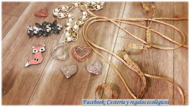 Y para decorar, buscamos entre nuestras cosas algo que ya no usemos, pueden ser falsas gemas o dijes o colgantes, también podemos hacer figuras con silicón, y algún listón delgado, o cola de rato o mecate o yute...