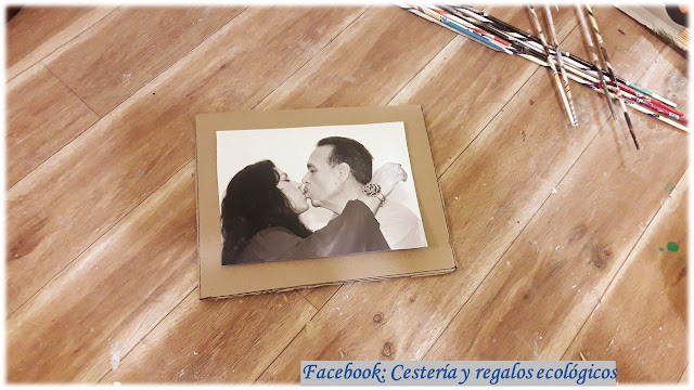 De cartón, solo ocupamos una pieza un poco mas grande que la foto que deseamos enmarcar...