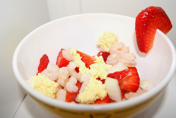 Mientras Ana seguía en la bañera, Mario se apresuro a prepara una romántica cena, y que mejor que unas gambas y unas sabrosas fresas, un plato delicado y delicioso que podéis encontrar en ¡Que rico!