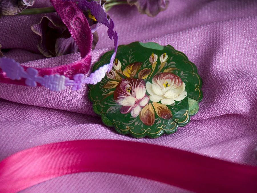 El verde combina muy bien con el rosa, por eso hemos escogido un pequeño broche pintado en esos tonos, que también puedes hacer tú misma tal como hemos explicado en la gama ‘Rojo Pasión’.