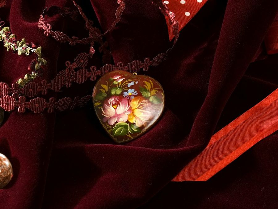 El símbolo universal de San Valentín es el corazón, y para nuestro ‘bodegón’ de materiales en rojo hemos escogido uno muy bonito, que luce delicadas flores pintadas a mano. Es una tarea que puedes hacer tú misma, recortando el corazón en una tabla fina, como la madera de balsa, y adornándolo después con el motivo que prefieras. Antes de pintar la flor es aconsejable dar una imprimación tapaporos, y después un suave lijado.