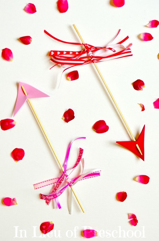 Para darle un toque especial a cualquier rincón, unas flechas lanzadas por Cupido. Palillo para las brochetas, cintas, un triángulo de goma eva y listas para ser disparadas.
