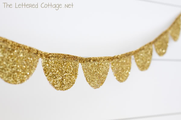 Si también os ha encantado como a mí la guirnalda de purpurina dorada, en el blog comentan que está hecha con círculos de cartulina doblados por la mitad, rociados con pegamento en spray y cubiertos por purpurina dorada, si queréis una manera más sencilla de hacerlos podéis utilizar goma eva de purpurina y listo.