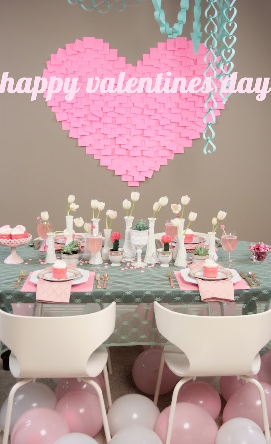 Qué me decís de esta deco, ese pedazo de corazón hecho con post-it rosas es para morirse, y el detalle de llenarlo todo de globos... lo más!