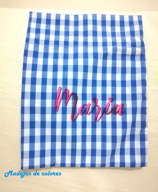 Y por último unas talegas para mi sobrina llevar al colegio pintadas con lettering. A falta de poner el cordón, que la mercería está cerrada por vacaciones.
