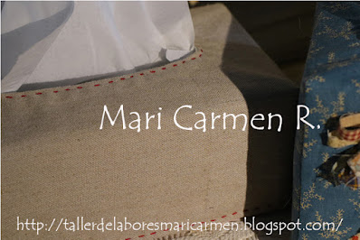 hice una sencilla en color arena y las puntadas en rojo, sin más adornos, para que no destaque en la decoración de mi salón.