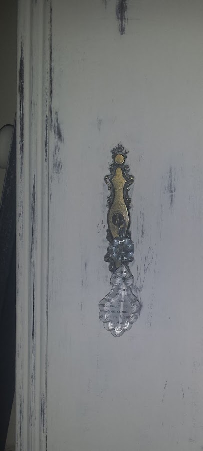 Y finalmente colgarlo de la parte del tirador que estaba en la mesilla.