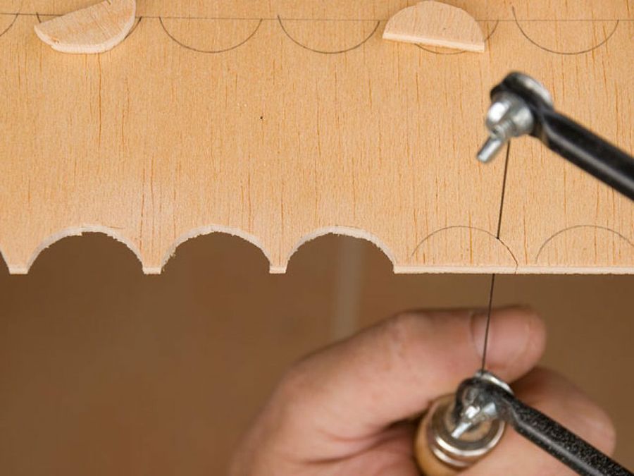 Y seguidamente procedemos a cortarlas con la sierra de marquetería, fijando bien la madera de balsa con dos mordazas o sargentos de carpintería. Es una tarea sencilla, que haremos en pocos minutos.
