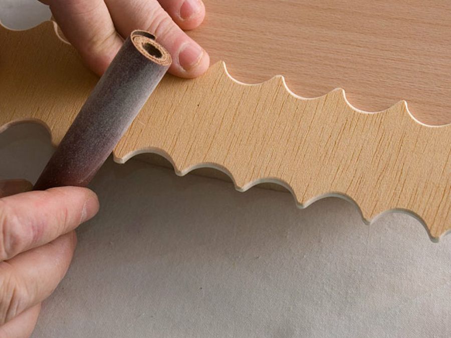 Para que el lijado sea plenamente efectivo, y quede un borde suave que no desgaste los hilos, procedemos a biselar las muescas por ambas caras de la tablilla.