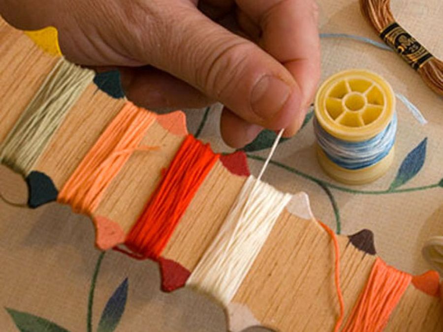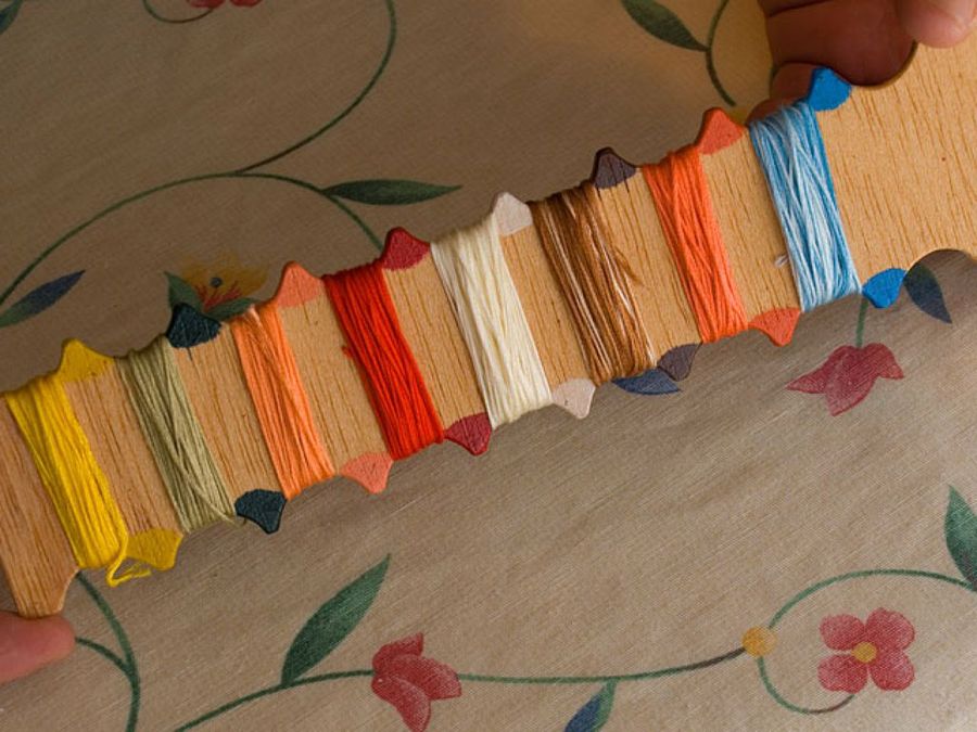 Ese detalle puede parecer irrelevante, pero supone una tarea añadida al trabajo de bordar. Las pequeñas madejas se enredan con suma facilidad, de tal manera que algunos costureros de punto de cruz llevan un minúsculo torno, a fin de enrollar cada hilo en una chapita. Si tu costurero no lo tiene, en este reportaje te enseñamos a hacer un sencillo y clásico devanador.