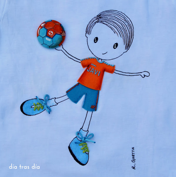 Pues esta vez Leticia me ha planteado un nuevo reto, de esos que ya os he dicho en más de una ocasión que me encanta y me asusta a partes iguales. En esta ocasión quería que le hiciera una camiseta con Dewito jugando al balonmano.
