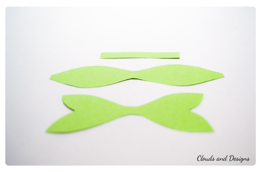Una vez tenemos todas las tiras cortadas, tenemos que hacer lacitos como los que muestro en la imagen. Yo los he pegado con cinta de doble cara, pero se puede usar pegamento o cualquier otro adhesivo.