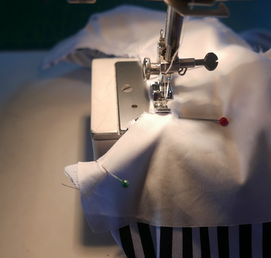 Cosemos la vista por el cuello, tal y como la habíamos colocado con los alfileres: