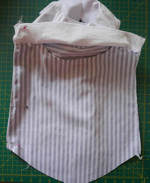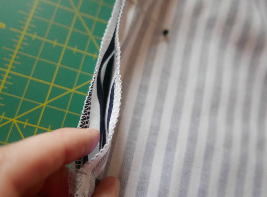 Una vez cosidos los laterales, por el derecho pasaremos, justo por en medio de la costura, un pequeño pespunte para que el forro no se vea por el exterior.