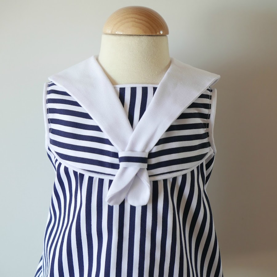 Para empezar vamos a unir con alfileres los laterales. Es importante que lo hagamos como se ve en la foto, de esta manera uniremos y coseremos a la vez los laterales de la ranita o vestido y los laterales de las vistas internas.