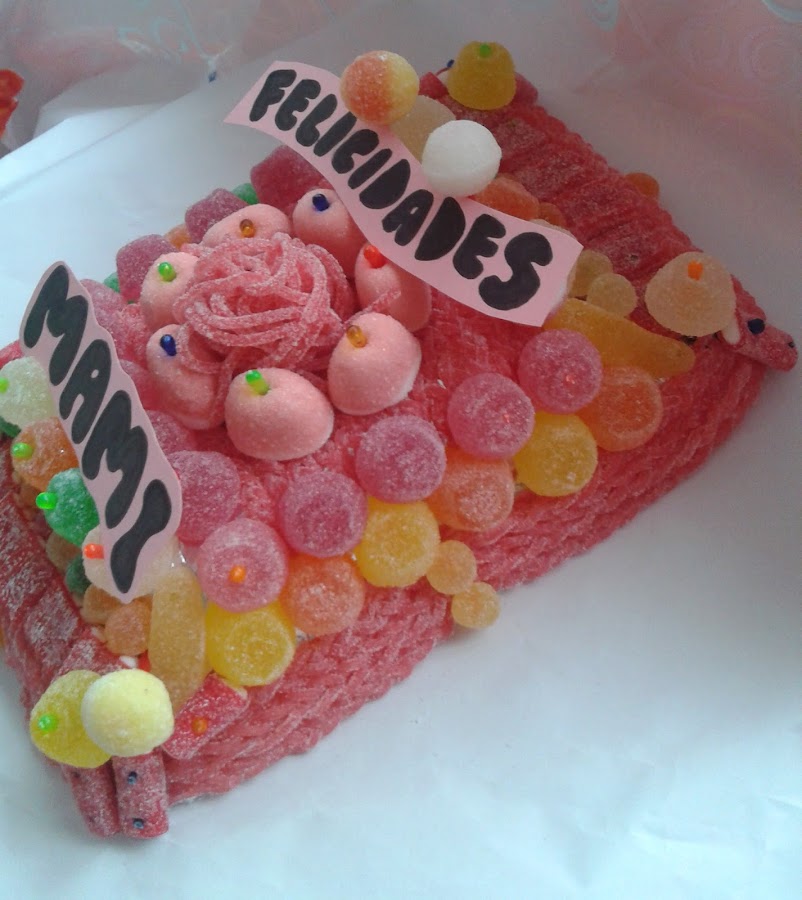 Es una tarta hecha con gominolas .