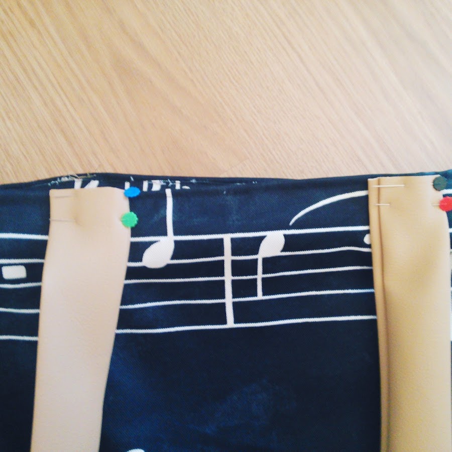 Vamos con lo más trabajoso, mete el forro dentro del exterior del bolso, y ahora haz una pequeña doblez a la tela exterior y otra pequeña doblez a la segunda tira que has cosido, ahora ponle alfileres y yo te aconsejo hilvanarlo, se escapa mucho la tela y es más rápido al pasarlo a la máquina, remata bien al principio y al final para que se quede bien cosido.