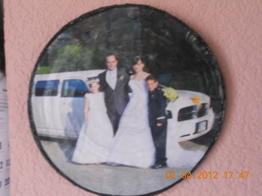Y acompañado de.. el plato decorativo con la foto de nuestra comu-boda....