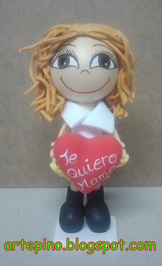Estas son las fofuchas que he fabricado para el día de la madre. Son minis, miden 12 cm. de alto, el corazón esta hecho con Silk Clay. Para ver más fotos en FOFUCHAS arte pino