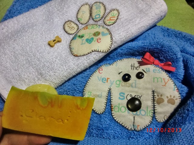 Os habéis fijado? sí, sí...en los detalles.... Si os fijàis en las letras del estampado de las aplicaciones, que es la misma tela, veréis que están recortadas estratégicamente ;P