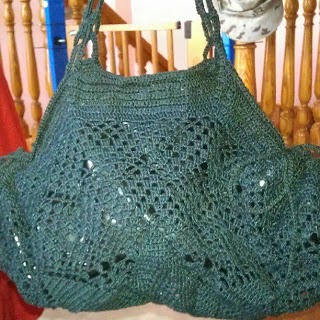 Este es un bolso que queda de tamaño aproximado de 40 x 25 realizado en ganchillo con hilo de algodón.