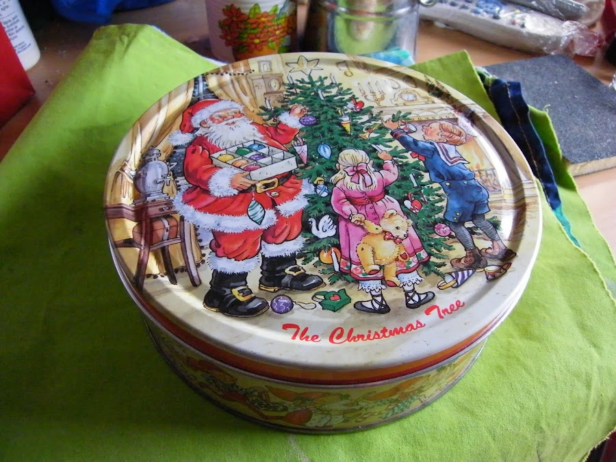 De una lata de galletas, de las danesas de toda la vida de dios!! jejejeje saqué un pequeño costurero, la lata lleva un par de manos de geso, un par de manos de pintura color manteca y una pasada de lija entre mano y mano.