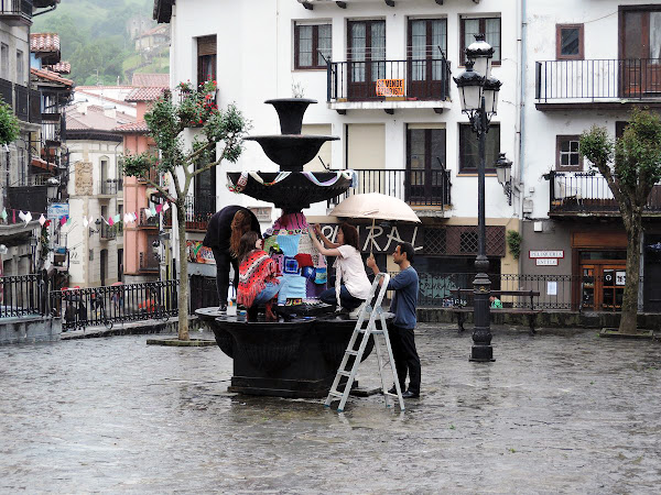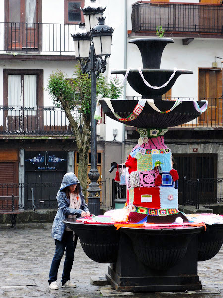 Pero la mañana se estaba terminando, con frío y mucha agua, así que empezamos a recoger, y dejamos allí sola a nuestra fuente forrada de mil colores y le dijimos, hasta el año que viene!!!!