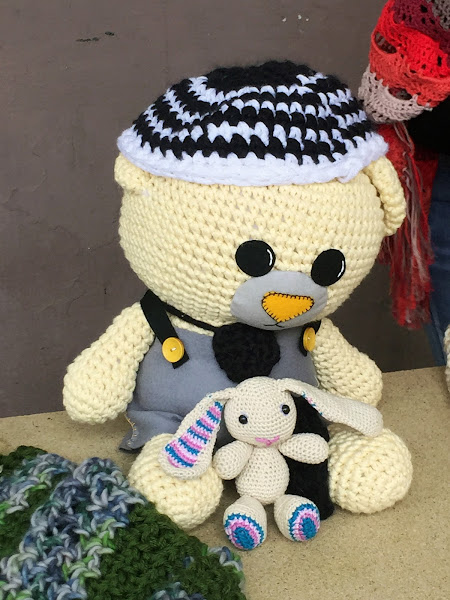Por allí seguían tejiendo, haciendo sus jerseys, echarpes, alfombras y muñecos, ya había hambre y si hubiera hecho mejor día, algunos ya estaban pensando en traer algunas tortillas y bocatas.