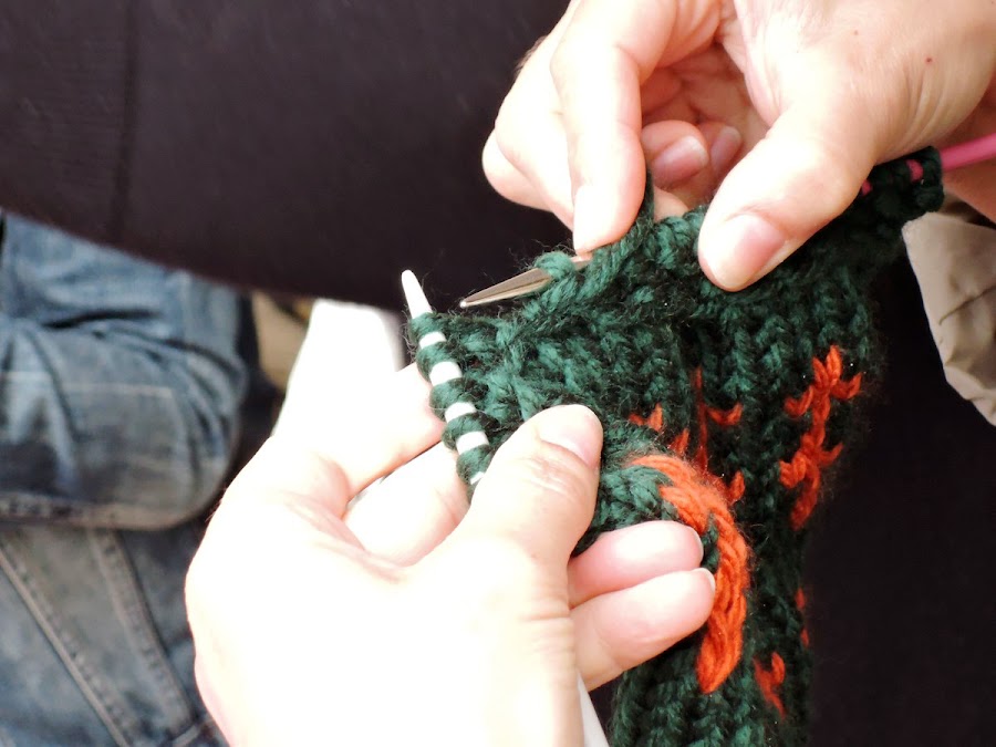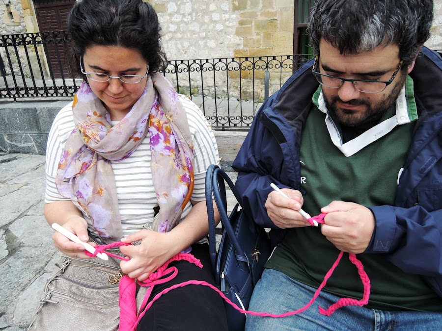 Poco a poco fue llegando más gente, gente conocida, otros personas que nunca había visto, algunos solo miraban, y otras personas buscaban un sitio, sacaban sus agujas y se ponían a tejer, empezó con muy buen pie.