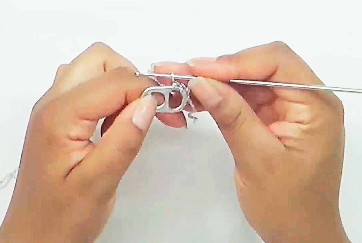 Tejer en la parte redondeada de la anilla, 3 medios puntos.