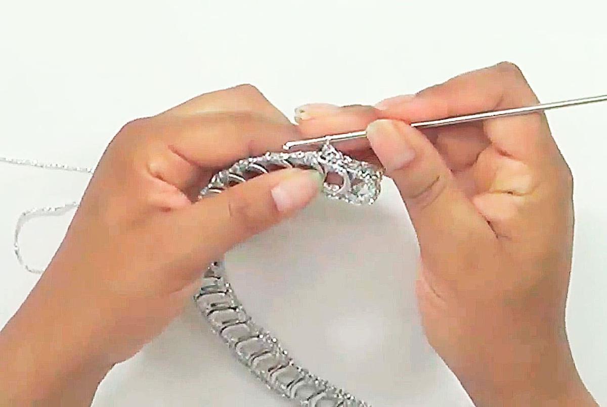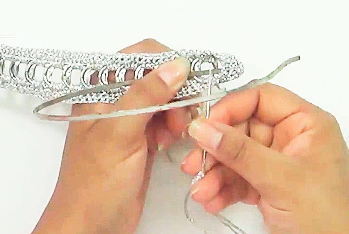 Repetir el proceso hasta tener todas las anillas añadidas (la cantidad dependerá de la base de diadema que tengas, así que hay que ir midiendo).