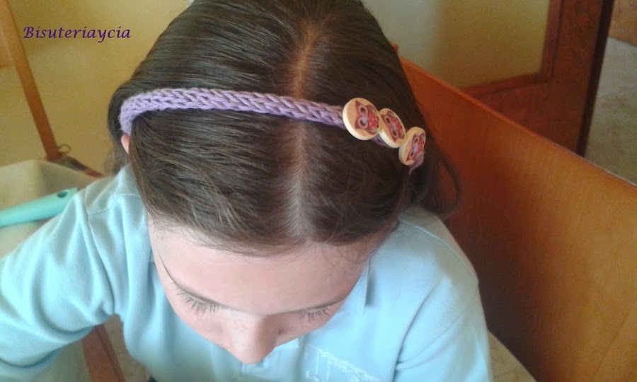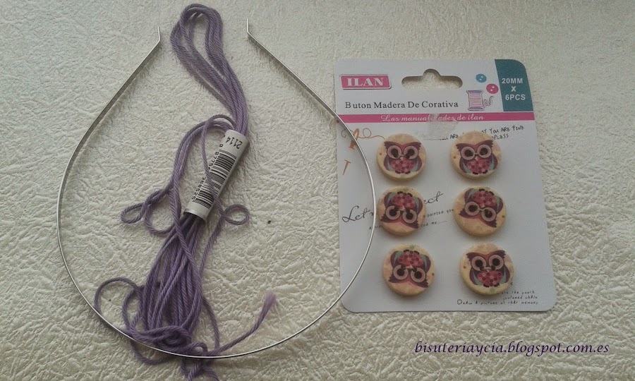 El material es bastante sencillo, una base para diademas, hilo de algodón y unos botones divertidos.