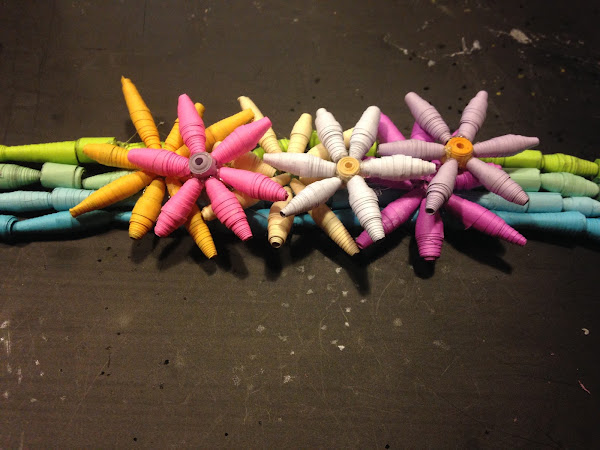 Hace unos meses atrás les presente unas manualidades con rollitos de papel, como "Lapicero de papel" y "Posa tetera", ahora les propongo hacer cuentas de papel para hacer una diadema o lo que se te ocurra.