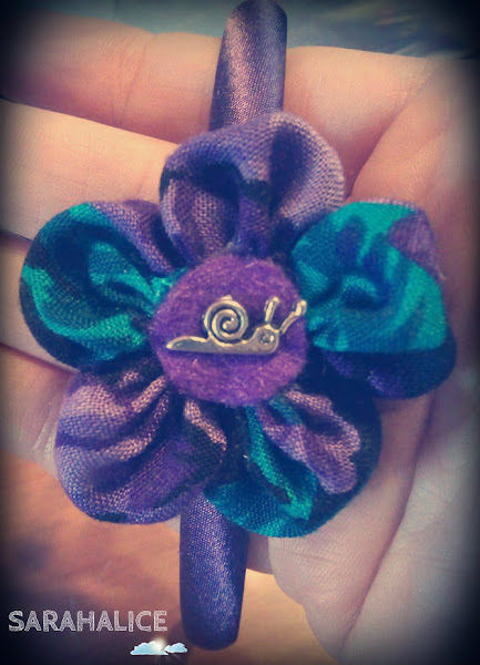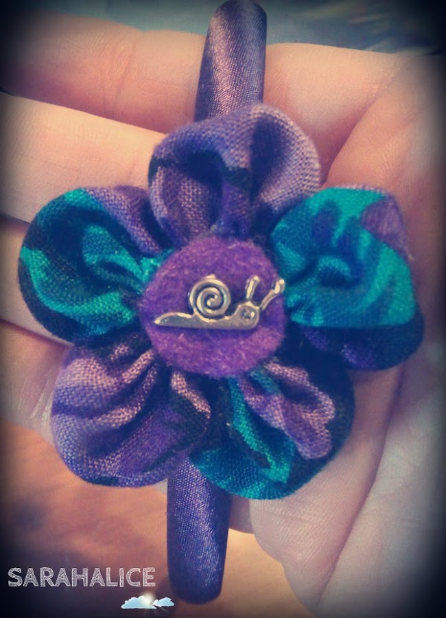 En el centro de dicha flor tenemos un redondel de fieltro morado con un charm de caracol en el centro, dándole nuestro toque personal e inocente.