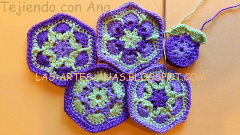 Una vez hechos los 5 exágonos , se unen a punto bajo bordeandolas, de manera que al quedar libres los costados interiores, hace que se adapte a la cabeza a modo de diadema articulada