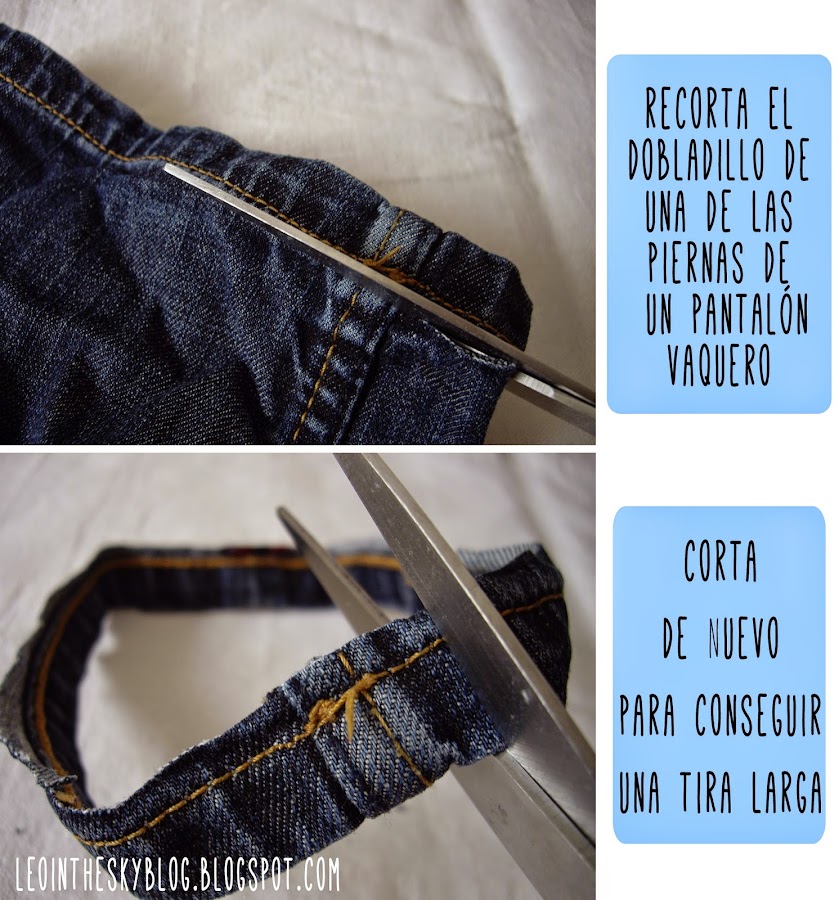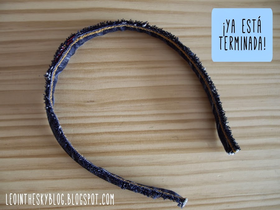 Lo primero que necesitas, además de una diadema (yo utilicé una finita de esas que venden para forrar, aunque podría ser cualquiera que tuvieras en casa), unas tijeras, aguja, hilo y un pantalón vaquero que ya no uses.