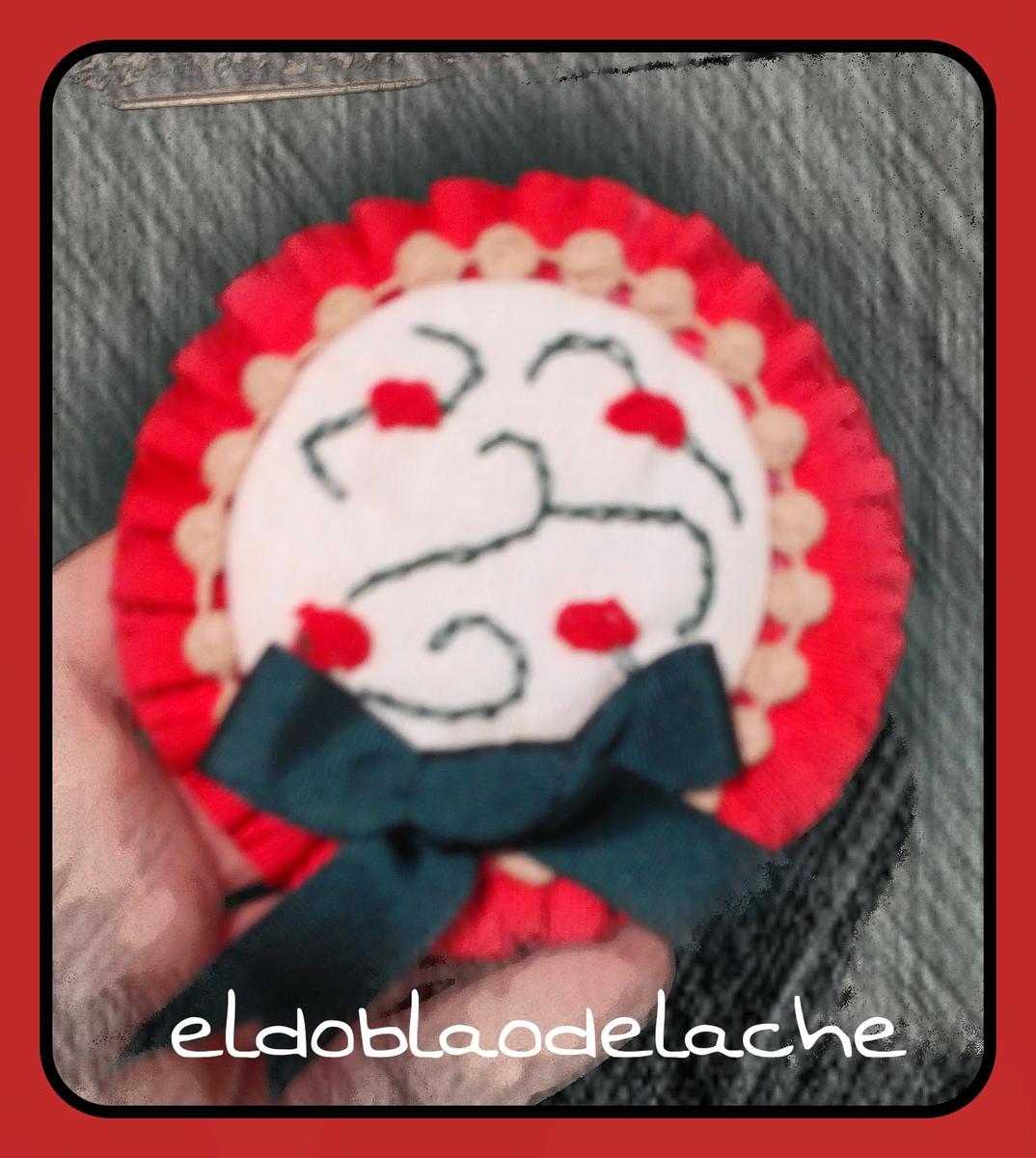 En tela color celeste con adornos en color negro y rojo. Una bonita combinación que se va para Tenerife.