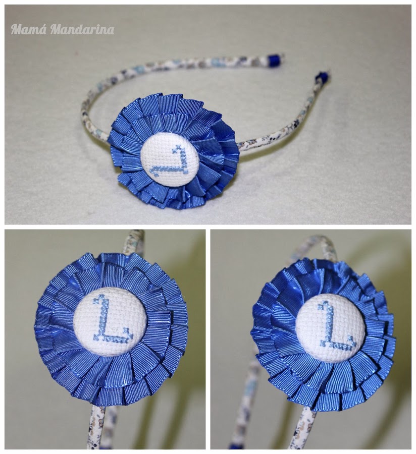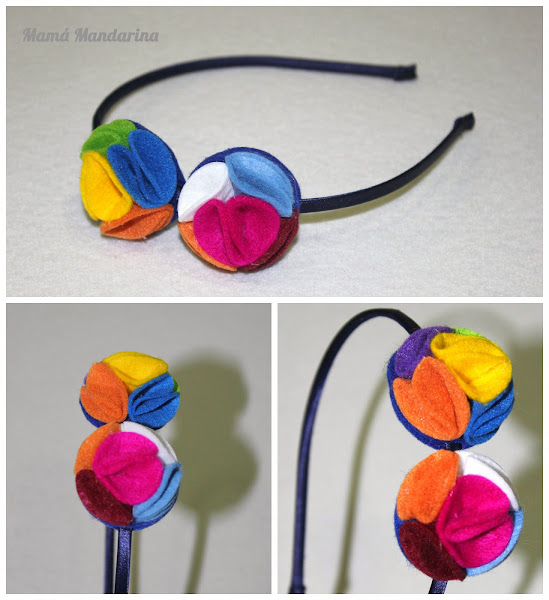 Diademas hechas a mano con aplicaciones de fieltro, cinta plisada y botones forrados.