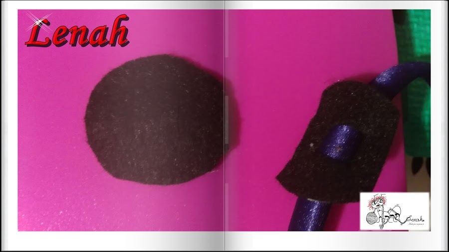 Una vez realizado el lazo, procederemos a colocarlo sobre la diadema. Cortamos dos círculos de filtro para cada diadema; a uno de ellos le hacemos dos cortes para poder introducir la diadema por el.