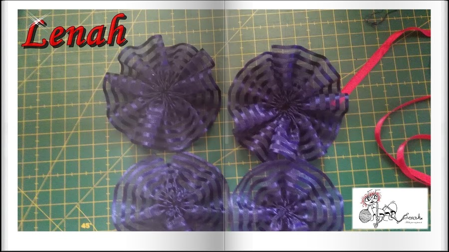 Realizamos el paso anterior 4 veces, para dos diademas. Previamente habremos forrado las diademas, ( Este enlace se actuarizara en breve).