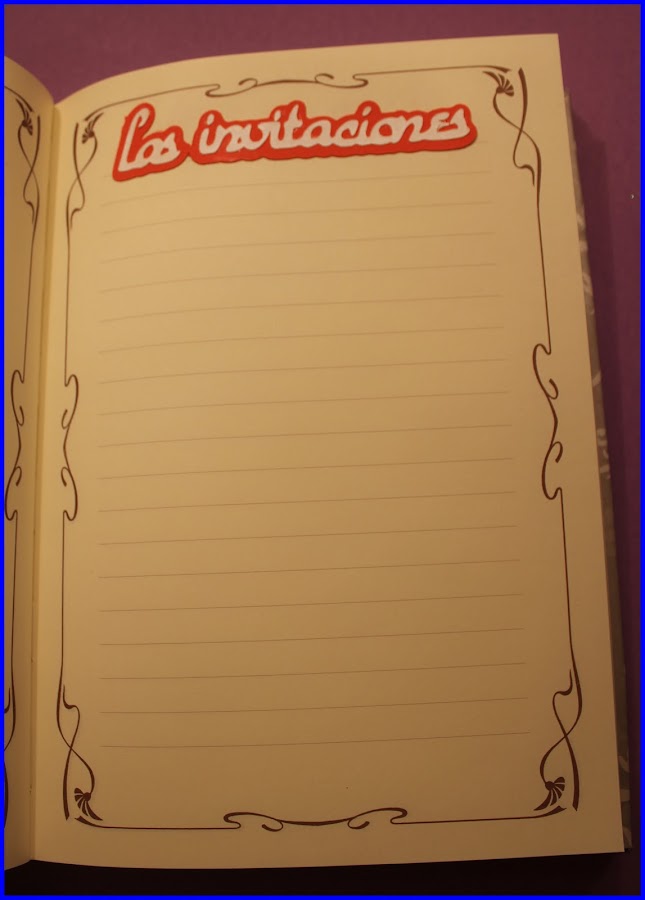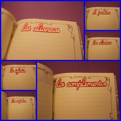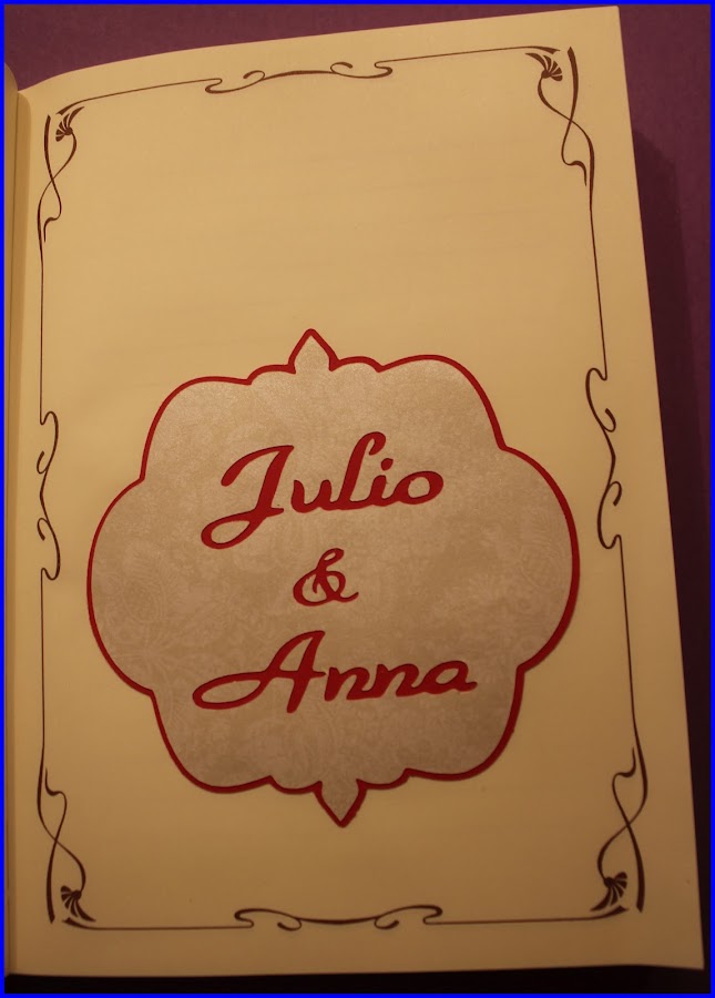 El interior del diario lo adquirí hace tiempo en una web, lo siento pero no recuerdo cual, todas ellas están decoradas con recortes de cricut. En la primera de ellas nos encontramos con los nombres de los novios.