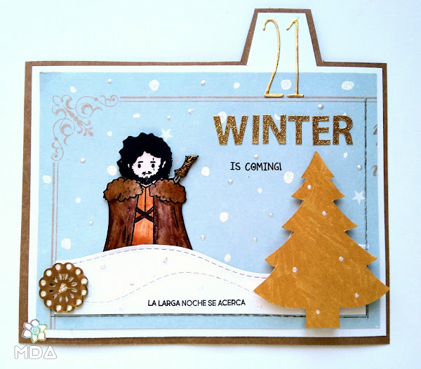 El último día que os puedo mostrar es el 21 de diciembre, no hay foto pero los sellos de la colección "Hielo y Fuego", inspirados en la serie Juego de Tronos, que ha diseñado 5centímetros, me han servido para decorar una página fría, fría en este primer día del invierno.