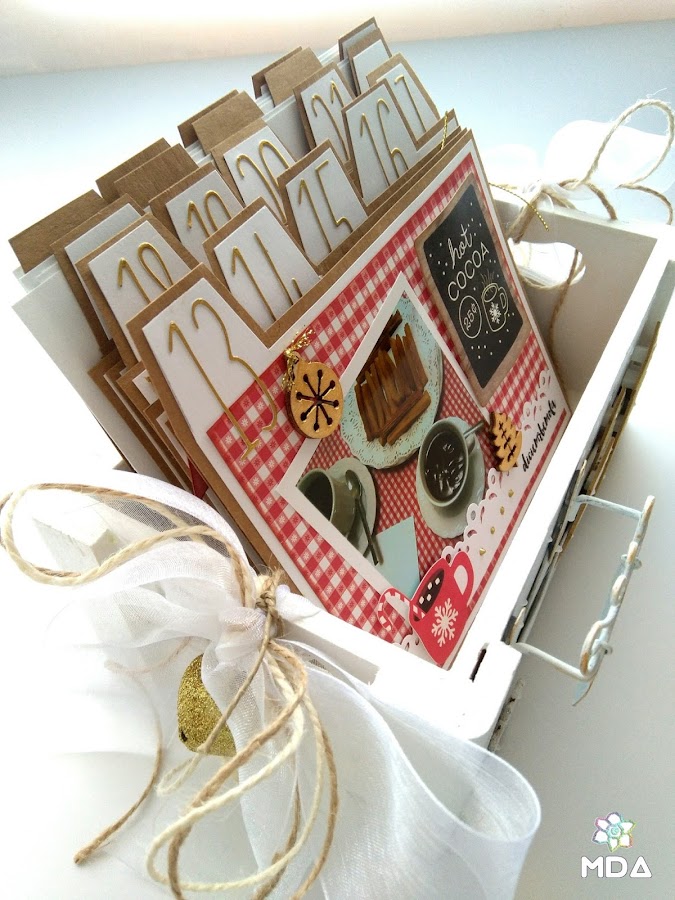 Estas son las fichas, de mi particular archivador navideño, que tengo hechas hasta ahora. Como podéis ver mi diario comienza el 13 de diciembre, como ya he comentado otros años esto es porque en mi familia siempre es éste el día elegido para poner el árbol o el belén y merendar chocolate con estrellas de Oriente ( o churros que es lo que ha tocado este año). Terminaré el 6 de enero con la magia del Día de Reyes y aunque en mi casa ya no hay niños seguimos manteniendo esa ilusión por abrir juntos los regalos.
