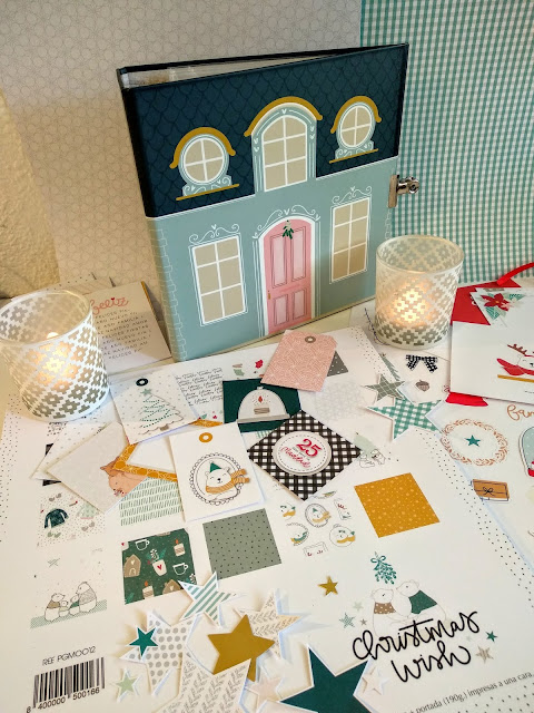 Lo primero es seleccionar una colección que sirva de base, me he decantado por Christmas Wish de Gigi et moi, fue el premio que recibí al ganar el reto "Un año de cuento" en septiembre, me gustó y con ella trabajaré. Colores y diseños muy apropiados para lo que he decido hacer este año.