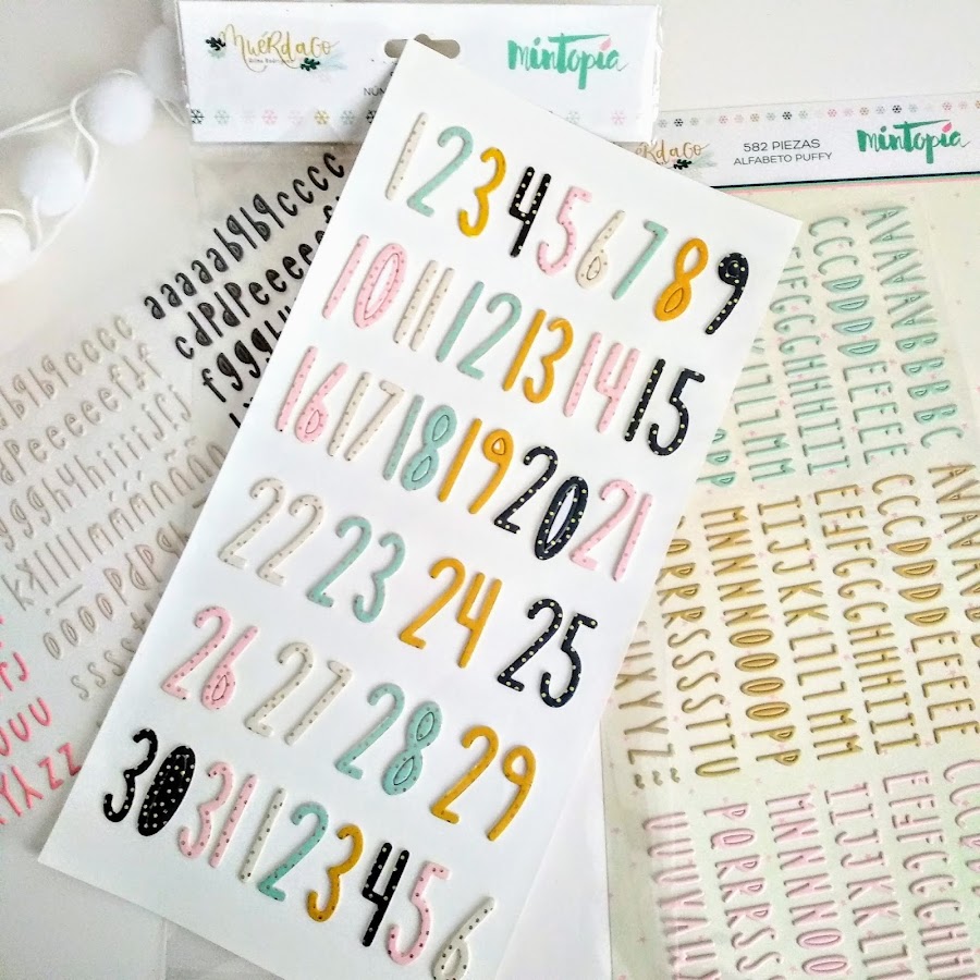 Parte muy importante del Diario de Navidad son los números, para este año elegí los de la colección Muérdago de Mintopía y los abecedarios.