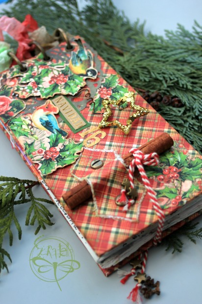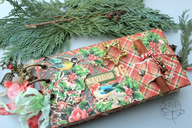 Tomé un formato alargado que me encanta y unos papeles de G45 de hace marras pero que me parecen preciosos, y en una tarde ya tenía mi libro, con un cerraje de lo más navideño de este mundo: un tronco de canela y estrellitas