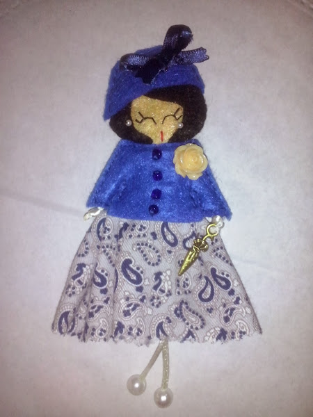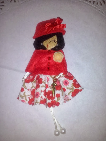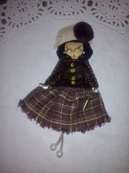 Llevamos muchos días de lluvia y aveces este tiempo nos baja el ánimo, así que nada mejor que alegrarnos la vista, luciendo un broche de muñeca con paraguas incluido. Son artesanía creativa en fieltro con elegantes adornos como la rosa que lucen las muñecas, chaqueta abotonada, falda, zapatos en perla blanca y el paraguas metálico en color bronce.