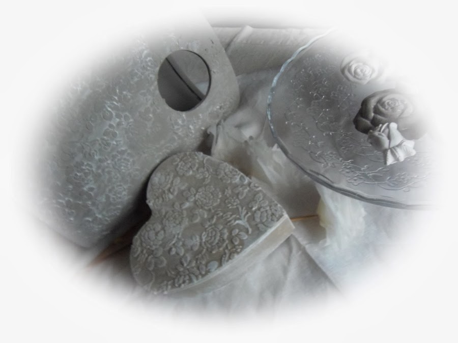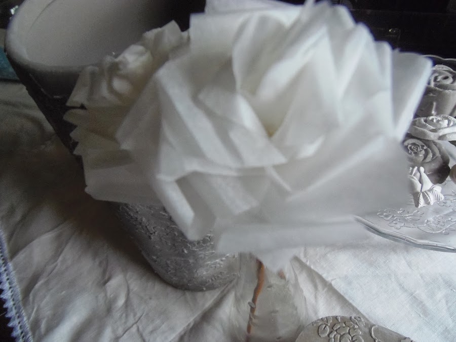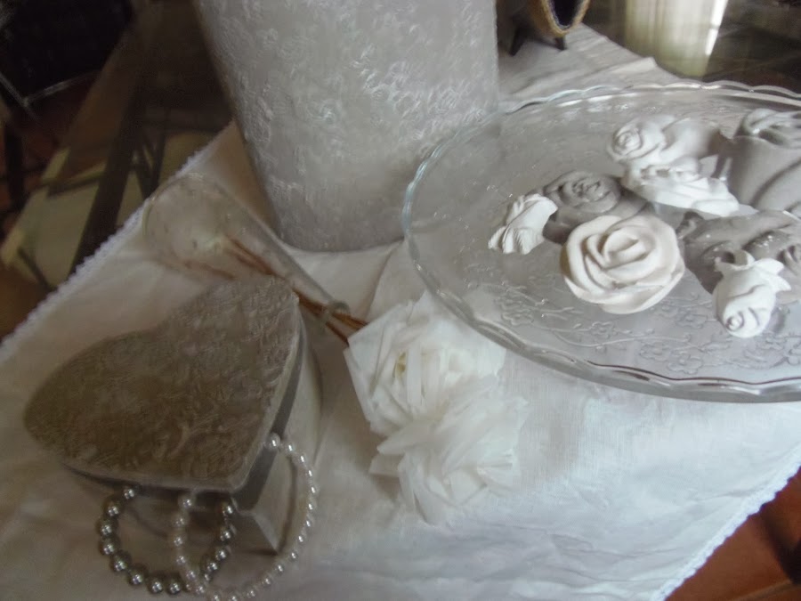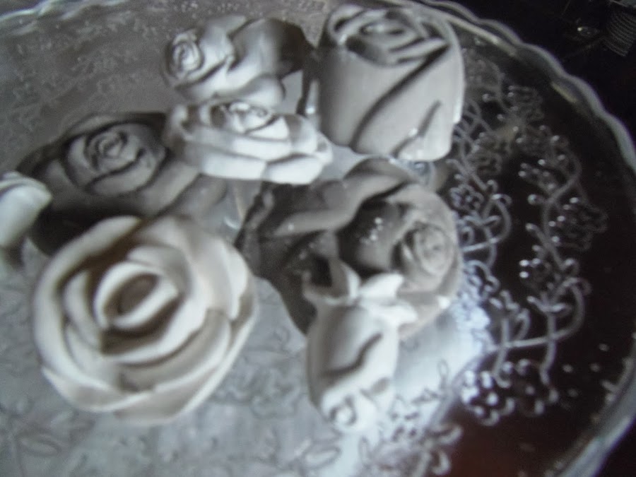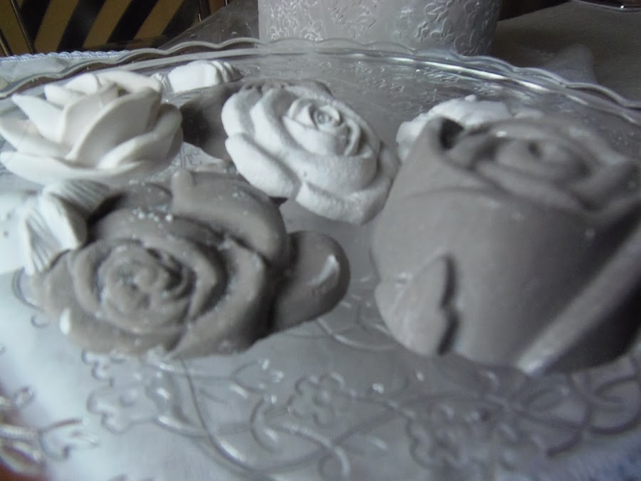 Después con unos moldes,me dediqué a hacer rosas de escayola,algunas pintadas y envejecidas de la misma manera qué el jarrón y otras de un blanco impoluto.